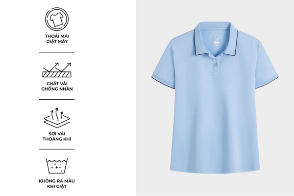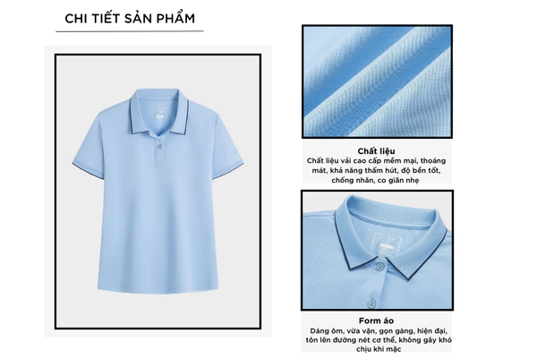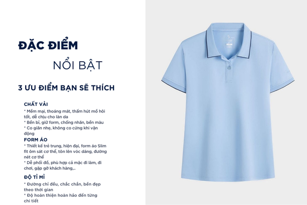 - Áo Polo nữ với thiết kế đơn giản, đa năng, dễ mặc phom dáng vừa vặn phù hợp nhiều dáng người.