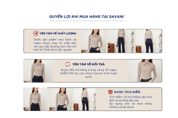 - Hỗ trợ đổi hàng trong vòng 30 ngày và miễn phí tại tất cả chi nhánh thuộc hệ thống thời trang Savani.
