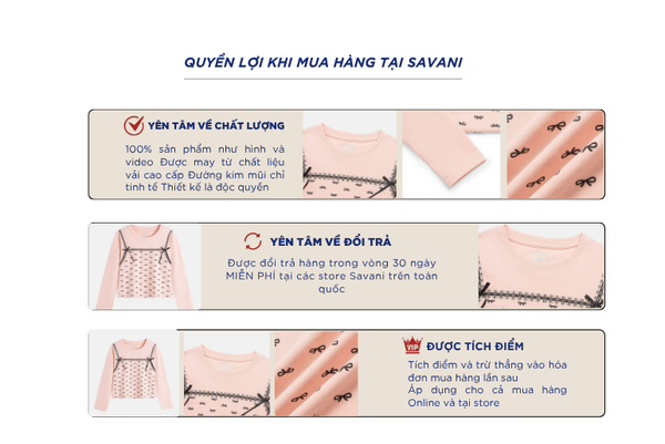 - Hỗ trợ đổi hàng trong vòng 30 ngày và miễn phí tại tất cả chi nhánh thuộc hệ thống thời trang Savani.