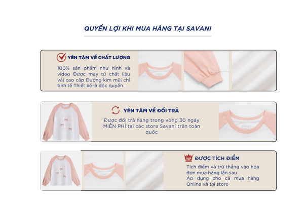 - Hỗ trợ đổi hàng trong vòng 30 ngày và miễn phí tại tất cả chi nhánh thuộc hệ thống thời trang Savani.