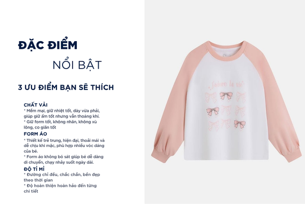 Áo thun dài tay trẻ em được xem là một món đồ mà bất kì cha mẹ nào cũng nên lựa cho con. Áo nỉ là sản phẩm vô cùng cần thiết trong thời điểm thu đông vì áo thun giữ nhiệt tốt, giúp cơ thể luôn ấm áp trong thời tiết lạnh. Đồng thời, cấu trúc sợi dệt thoáng khí giúp hạn chế hầm bí và tích nhiệt, mang lại cảm giác dễ chịu khi mặc cả ngày.