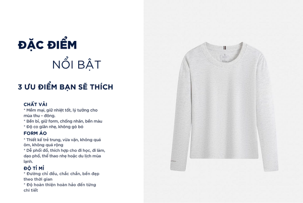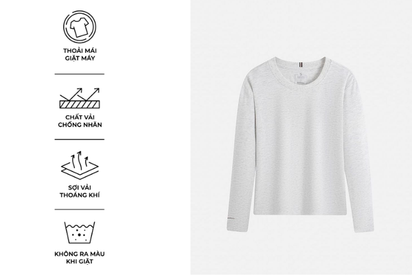 Áo thun dài tay nữ được xem là một món đồ đa di năng mà bất kì ai cũng nên sở hữu cho riêng mình. Áo thun là sản phẩm vô cùng cần thiết trong thời điểm thu đông vì áo nỉ giữ nhiệt tốt, giúp cơ thể luôn ấm áp trong thời tiết lạnh. Đồng thời, cấu trúc sợi dệt thoáng khí giúp hạn chế hầm bí và tích nhiệt, mang lại cảm giác dễ chịu khi mặc cả ngày.