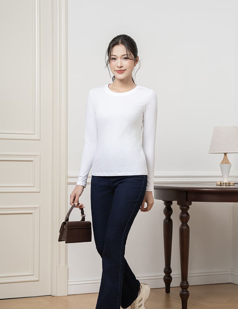 - Áo thun dài tay nữ với thiết kế đơn giản, đa năng, dễ mặc phom dáng vừa vặn phù hợp nhiều dáng người.