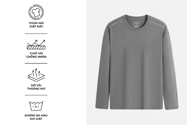 Áo thun dài tay nam được xem là một món đồ đa di năng mà bất kì ai cũng nên sở hữu cho riêng mình. Áo thun là sản phẩm vô cùng cần thiết trong thời điểm thu đông vì áo nỉ giữ nhiệt tốt, giúp cơ thể luôn ấm áp trong thời tiết lạnh. Đồng thời, cấu trúc sợi dệt thoáng khí giúp hạn chế hầm bí và tích nhiệt, mang lại cảm giác dễ chịu khi mặc cả ngày.