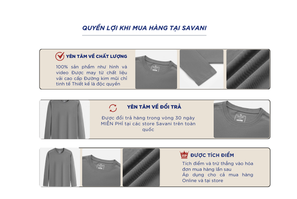 - Hỗ trợ đổi hàng trong vòng 30 ngày và miễn phí tại tất cả chi nhánh thuộc hệ thống thời trang Savani.