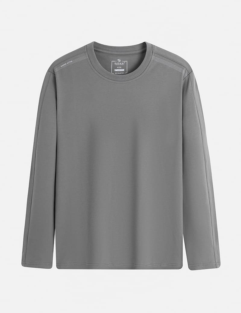 Áo thun dài tay nam là một trong những sản phẩm tiên phong được Savani đặc biệt chú trọng về chất liệu.Sự kết hợp giữa sợi Cotton tự nhiên chiếm phần lớn và một lượng nhỏ Spandex nhằm tăng độ co giãn và linh hoạt. Sự pha trộn này tạo nên một loại vải có bề mặt mềm mại, thấm hút tốt nhưng vẫn giữ được độ đàn hồi cao, mang lại cảm giác thoải mái suốt ngày dài.