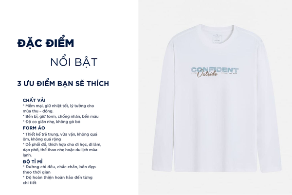 Áo thun dài tay nam được xem là một món đồ đa di năng mà bất kì ai cũng nên sở hữu cho riêng mình. Áo thun là sản phẩm vô cùng cần thiết trong thời điểm thu đông vì áo nỉ giữ nhiệt tốt, giúp cơ thể luôn ấm áp trong thời tiết lạnh. Đồng thời, cấu trúc sợi dệt thoáng khí giúp hạn chế hầm bí và tích nhiệt, mang lại cảm giác dễ chịu khi mặc cả ngày.