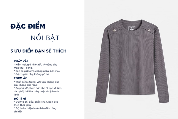 Áo thun dài tay nữ được xem là một món đồ đa di năng mà bất kì ai cũng nên sở hữu cho riêng mình. Áo thun là sản phẩm vô cùng cần thiết trong thời điểm thu đông vì áo nỉ giữ nhiệt tốt, giúp cơ thể luôn ấm áp trong thời tiết lạnh. Đồng thời, cấu trúc sợi dệt thoáng khí giúp hạn chế hầm bí và tích nhiệt, mang lại cảm giác dễ chịu khi mặc cả ngày.