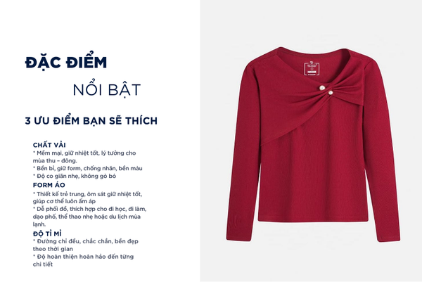 Áo thun dài tay nữ được xem là một món đồ đa di năng mà bất kì ai cũng nên sở hữu cho riêng mình. Áo thun là sản phẩm vô cùng cần thiết trong thời điểm thu đông vì áo nỉ giữ nhiệt tốt, giúp cơ thể luôn ấm áp trong thời tiết lạnh. Đồng thời, cấu trúc sợi dệt thoáng khí giúp hạn chế hầm bí và tích nhiệt, mang lại cảm giác dễ chịu khi mặc cả ngày.