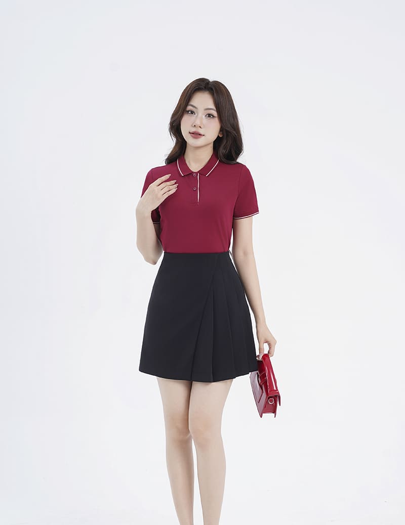 - Áo Polo nữ với thiết kế đơn giản, đa năng, dễ mặc phom dáng vừa vặn phù hợp nhiều dáng người.