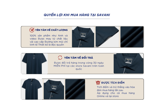 - Hỗ trợ đổi hàng trong vòng 30 ngày và miễn phí tại tất cả chi nhánh thuộc hệ thống thời trang Savani.