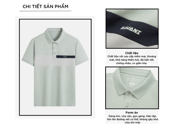 Áo Polo nam là một trong những sản phẩm tiên phong được Savani đặc biệt chú trọng về chất liệu. Sự kết hợp giữa sợi tự nhiên (Cotton) với sự bền bỉ, chống nhăn của sợi tổng hợp (Polyester) và độ co giãn linh hoạt của Spandex tạo nên một chất liệu mang lại cảm giác thoải mái, giữ form tốt và phù hợp cho các hoạt động năng động.