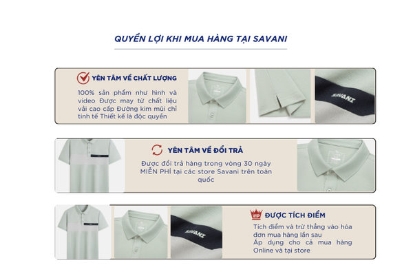 - Hỗ trợ đổi hàng trong vòng 30 ngày và miễn phí tại tất cả chi nhánh thuộc hệ thống thời trang Savani.