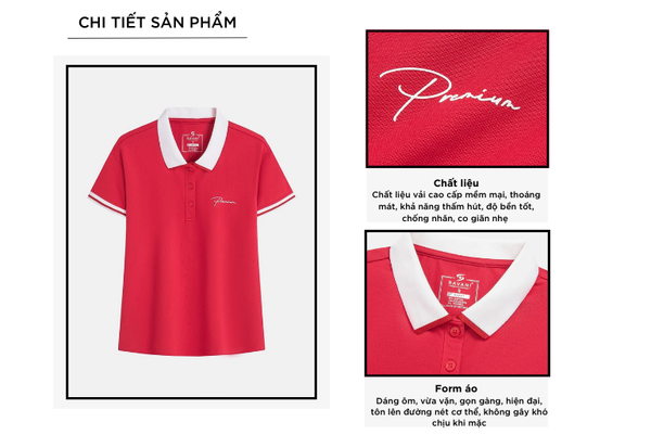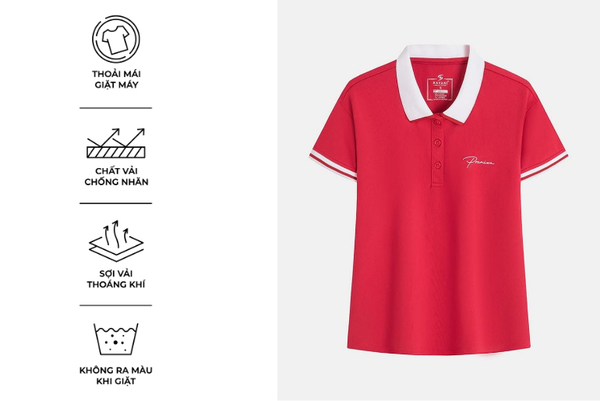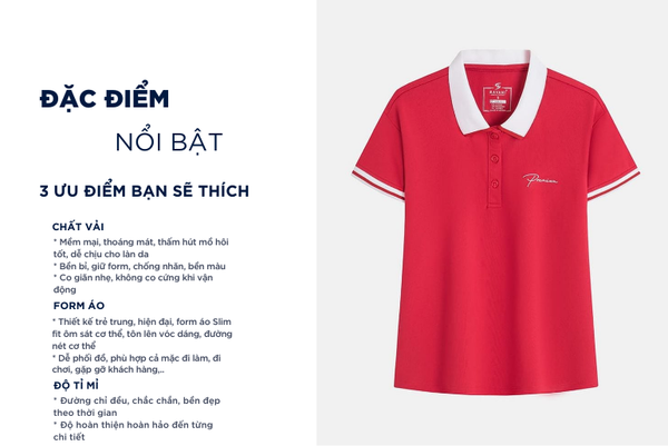 - Áo Polo nữ với thiết kế đơn giản, đa năng, dễ mặc phom dáng vừa vặn phù hợp nhiều dáng người.