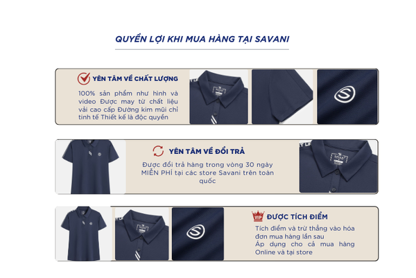 - Hỗ trợ đổi hàng trong vòng 30 ngày và miễn phí tại tất cả chi nhánh thuộc hệ thống thời trang Savani.