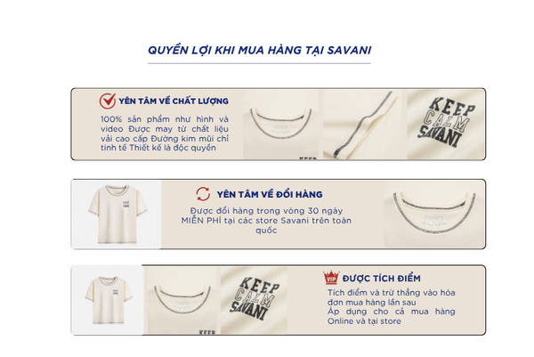 - Hỗ trợ đổi hàng trong vòng 30 ngày và miễn phí tại tất cả chi nhánh thuộc hệ thống thời trang Savani.