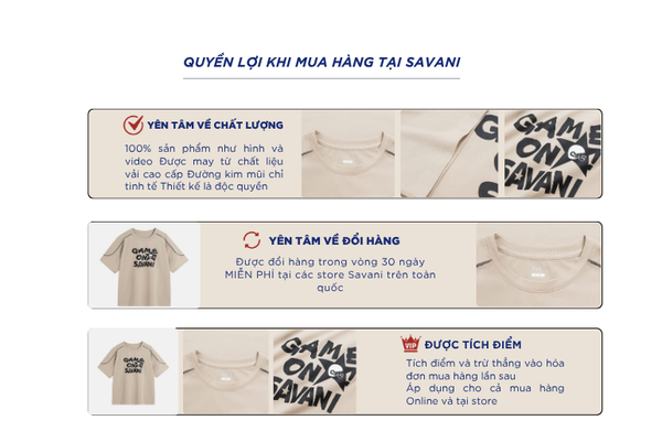 - Hỗ trợ đổi hàng trong vòng 30 ngày và miễn phí tại tất cả chi nhánh thuộc hệ thống thời trang Savani.