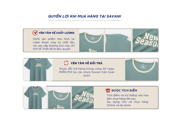 - Hỗ trợ đổi hàng trong vòng 30 ngày và miễn phí tại tất cả chi nhánh thuộc hệ thống thời trang Savani.