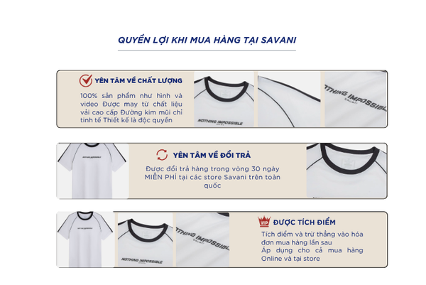 - Hỗ trợ đổi hàng trong vòng 30 ngày và miễn phí tại tất cả chi nhánh thuộc hệ thống thời trang Savani.