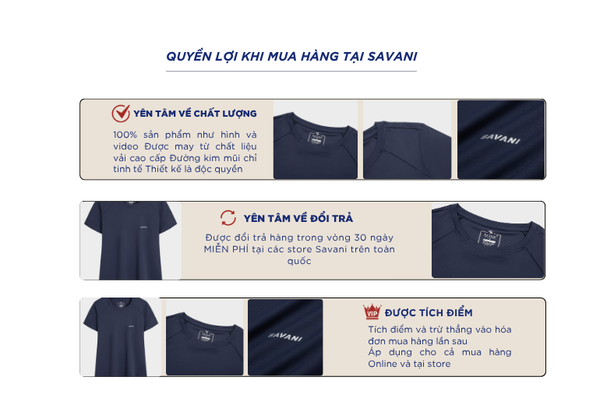 - Hỗ trợ đổi hàng trong vòng 30 ngày và miễn phí tại tất cả chi nhánh thuộc hệ thống thời trang Savani.