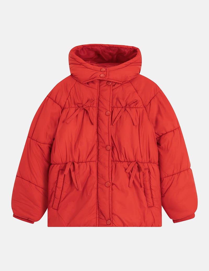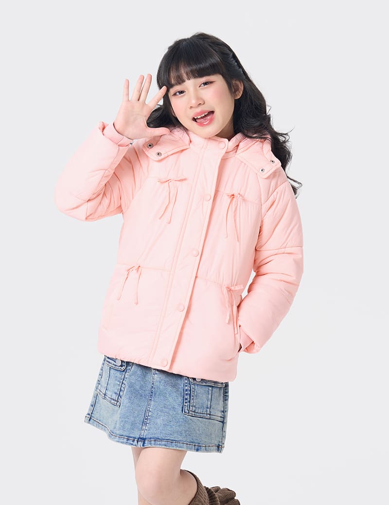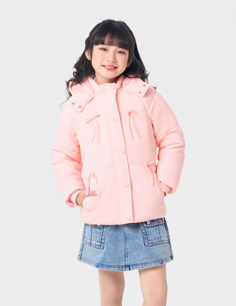 Áo phao chần bông bé gái nơ trang trí thân trước