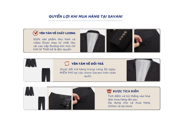 - Hỗ trợ đổi hàng trong vòng 30 ngày và miễn phí tại tất cả chi nhánh thuộc hệ thống thời trang Savani.