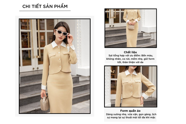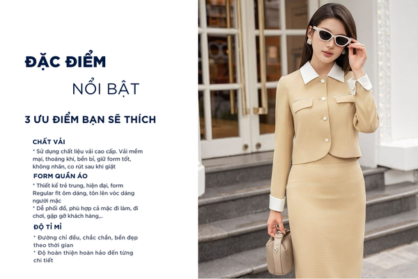- Bộ vest nữ với thiết kế tinh tế, dễ mặc phom dáng vừa vặn phù hợp nhiều dáng người.