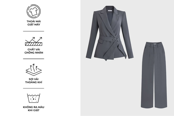 - Bộ vest nữ với thiết kế tinh tế, dễ mặc phom dáng vừa vặn phù hợp nhiều dáng người.