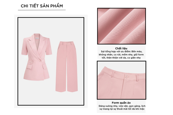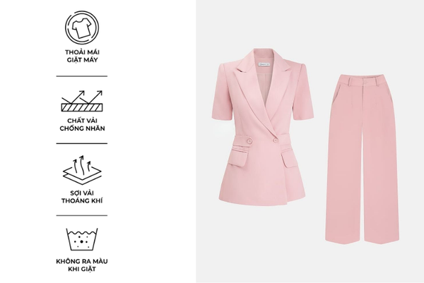 - Bộ vest nữ với thiết kế tinh tế, dễ mặc phom dáng vừa vặn phù hợp nhiều dáng người.