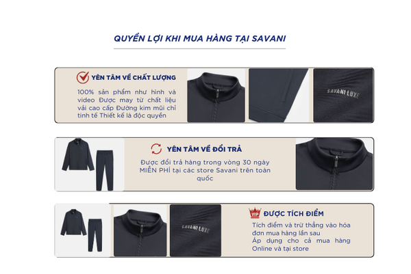 - Hỗ trợ đổi hàng trong vòng 30 ngày và miễn phí tại tất cả chi nhánh thuộc hệ thống thời trang Savani.