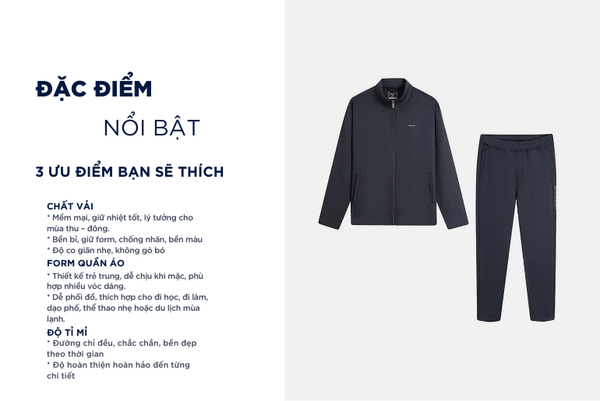- Bộ đồ đông nam với thiết kế đơn giản, đa năng, dễ mặc phom dáng vừa vặn phù hợp nhiều dáng người.