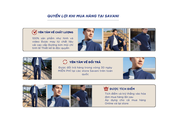 - Hỗ trợ đổi hàng trong vòng 30 ngày và miễn phí tại tất cả chi nhánh thuộc hệ thống thời trang Savani.