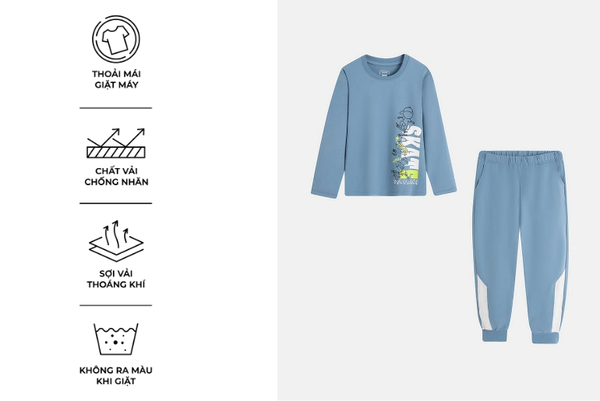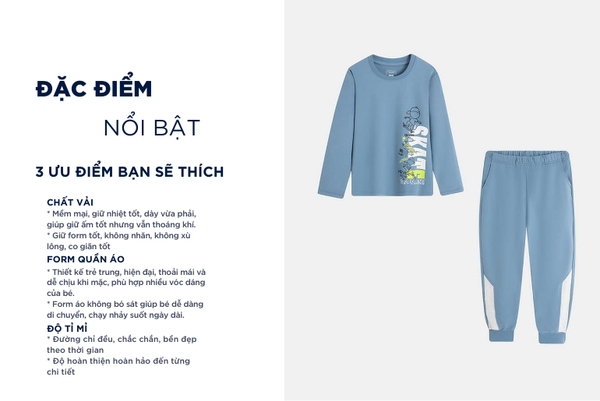 - Bộ đông trẻ em với thiết kế đơn giản, đa năng, dễ mặc phom dáng vừa vặn phù hợp nhiều dáng người của trẻ.