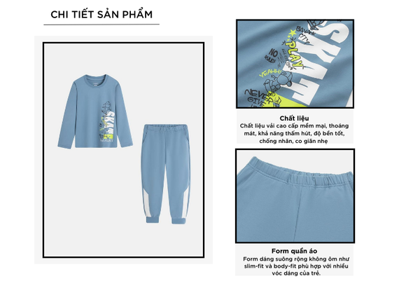 - Form Regular fit suông vừa không tạo cảm giác bó sát, giúp các bé thoải mái vui đùa, chạy nhảy.