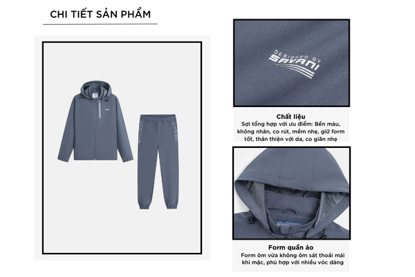 Bộ gió nam là một trong những sản phẩm tiên phong được Savani đặc biệt chú trọng về chất liệu. Sự kết hợp giữa Polyester (92%) và Spandex (8%) giúp sản phẩm có các ưu điểm như: Độ bền cao, chống nhăn, nhanh khô và giữ màu tốt, co giãn tốt, ôm cơ thể mà vẫn thoải mái.
