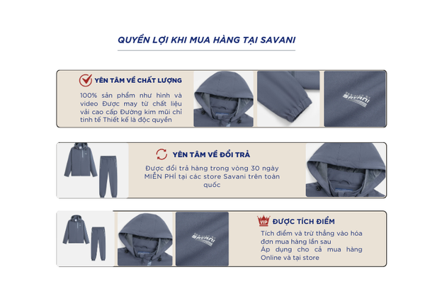 - Hỗ trợ đổi hàng trong vòng 30 ngày và miễn phí tại tất cả chi nhánh thuộc hệ thống thời trang Savani.
