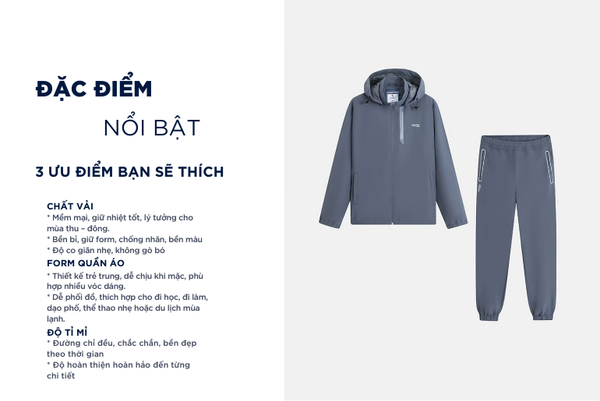 Bộ gió nam được xem là một món đồ đa di năng mà bất kì ai cũng nên sở hữu cho riêng mình. Bộ gió là sản phẩm vô cùng cần thiết trong thời điểm thu đông vì bộ gió giữ nhiệt tốt, giúp cơ thể luôn ấm áp trong thời tiết lạnh. Đồng thời, cấu trúc sợi dệt thoáng khí giúp hạn chế hầm bí và tích nhiệt, mang lại cảm giác dễ chịu khi mặc cả ngày.