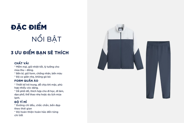 - Bộ gió nam với thiết kế đơn giản, đa năng, dễ mặc phom dáng vừa vặn phù hợp nhiều dáng người.