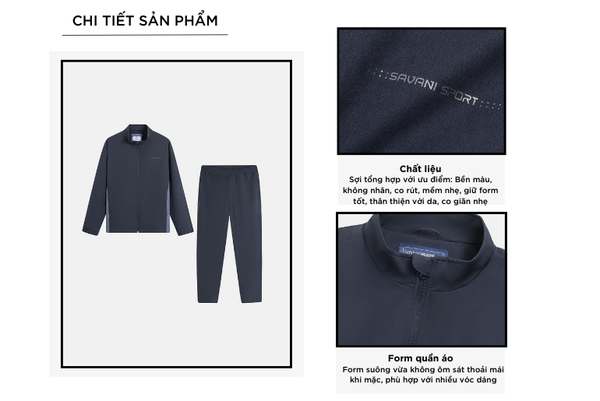 Bộ gió nam là một trong những sản phẩm tiên phong được Savani đặc biệt chú trọng về chất liệu. Sự kết hợp giữa Polyester (88%) và Spandex (12%) giúp sản phẩm có các ưu điểm như: Độ bền cao, chống nhăn, nhanh khô và giữ màu tốt, co giãn tốt, ôm cơ thể mà vẫn thoải mái.