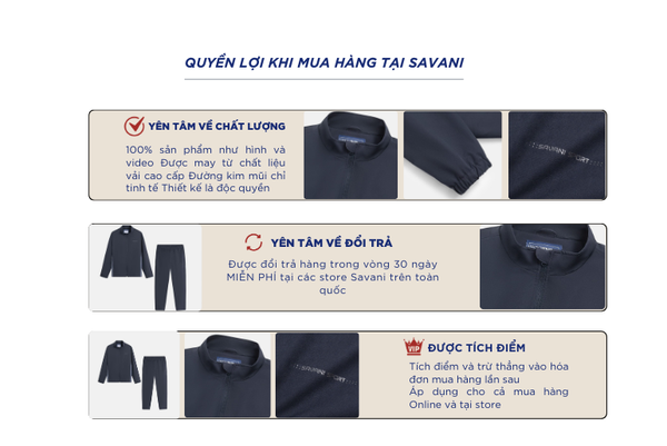 - Hỗ trợ đổi hàng trong vòng 30 ngày và miễn phí tại tất cả chi nhánh thuộc hệ thống thời trang Savani.