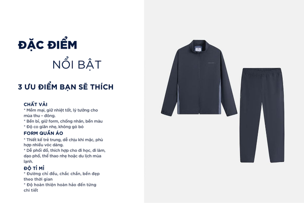 Bộ gió nam được xem là một món đồ đa di năng mà bất kì ai cũng nên sở hữu cho riêng mình. Bộ gió là sản phẩm vô cùng cần thiết trong thời điểm thu đông vì bộ gió giữ nhiệt tốt, giúp cơ thể luôn ấm áp trong thời tiết lạnh. Đồng thời, cấu trúc sợi dệt thoáng khí giúp hạn chế hầm bí và tích nhiệt, mang lại cảm giác dễ chịu khi mặc cả ngày.