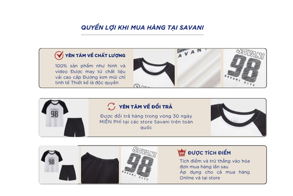 - Hỗ trợ đổi hàng trong vòng 30 ngày và miễn phí tại tất cả chi nhánh thuộc hệ thống thời trang Savani.