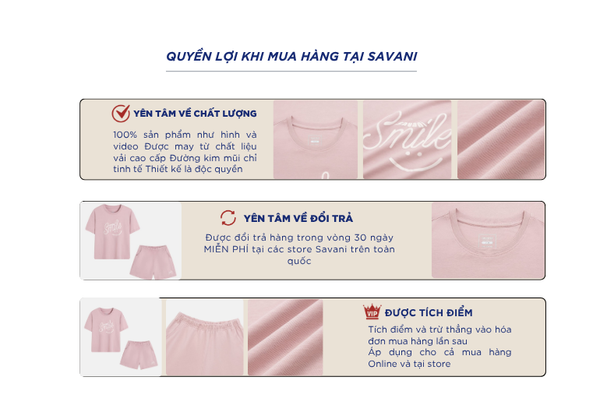 - Hỗ trợ đổi hàng trong vòng 30 ngày và miễn phí tại tất cả chi nhánh thuộc hệ thống thời trang Savani.