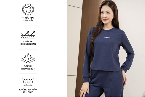 Bộ nỉ nữ là một trong những sản phẩm tiên phong được Savani đặc biệt chú trọng về chất liệu. Sự kết hợp giữa sợi tự nhiên (Cotton) với sự bền bỉ, chống nhăn của sợi tổng hợp (Polyester) và độ co giãn linh hoạt của Spandex tạo nên một chất liệu mang lại cảm giác thoải mái, giữ form tốt và phù hợp cho các hoạt động năng động.