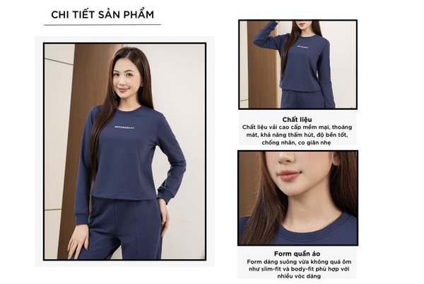 - Bộ nỉ nữ với thiết kế đơn giản, đa năng, dễ mặc phom dáng vừa vặn phù hợp nhiều dáng người.
