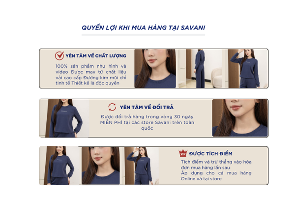 - Hỗ trợ đổi hàng trong vòng 30 ngày và miễn phí tại tất cả chi nhánh thuộc hệ thống thời trang Savani.