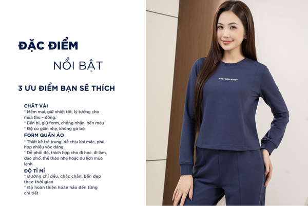 Bộ nỉ nữ được xem là một món đồ đa di năng mà bất kì ai cũng nên sở hữu cho riêng mình. Bộ nỉ là sản phẩm vô cùng cần thiết trong thời điểm thu đông vì bộ nỉ giữ nhiệt tốt, giúp cơ thể luôn ấm áp trong thời tiết lạnh. Đồng thời, cấu trúc sợi dệt thoáng khí giúp hạn chế hầm bí và tích nhiệt, mang lại cảm giác dễ chịu khi mặc cả ngày.