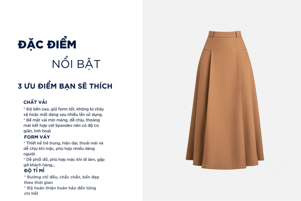 - Màu sắc trẻ trung, thanh lịch, rất dễ phối đồ: Có thể kết hợp với áo sơ mi, áo polo, áo phông,...Chân váy rất đa năng phù hợp cả khi mặc đi chơi, đi làm, đi gặp khách hàng,...