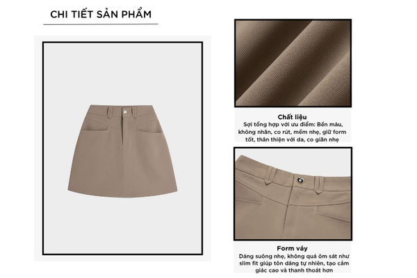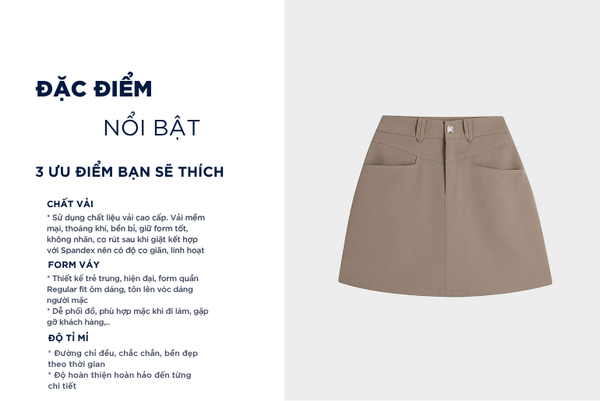 - Màu sắc trẻ trung, thanh lịch, rất dễ phối đồ: Có thể kết hợp với áo sơ mi, áo polo, áo phông,...Chân váy rất đa năng phù hợp cả khi mặc đi chơi, đi làm, đi gặp khách hàng,...