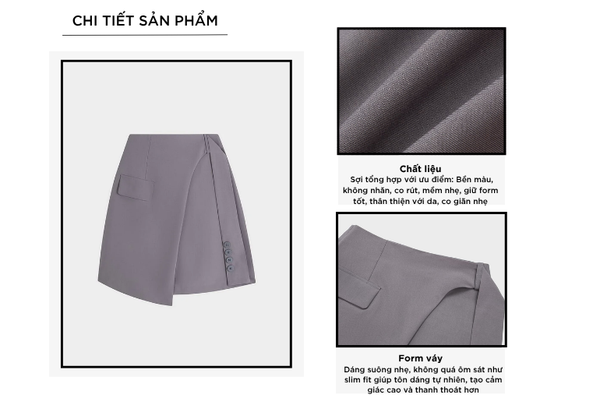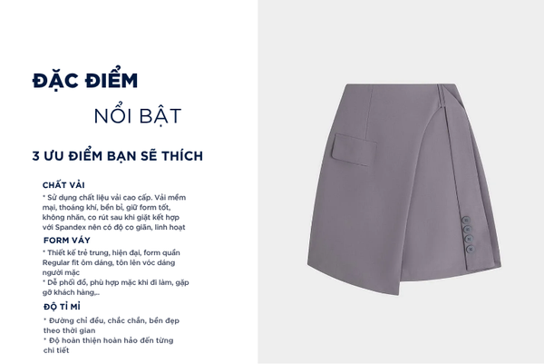 - Màu sắc trẻ trung, thanh lịch, rất dễ phối đồ: Có thể kết hợp với áo sơ mi, áo polo, áo phông,...Chân váy rất đa năng phù hợp cả khi mặc đi chơi, đi làm, đi gặp khách hàng,...